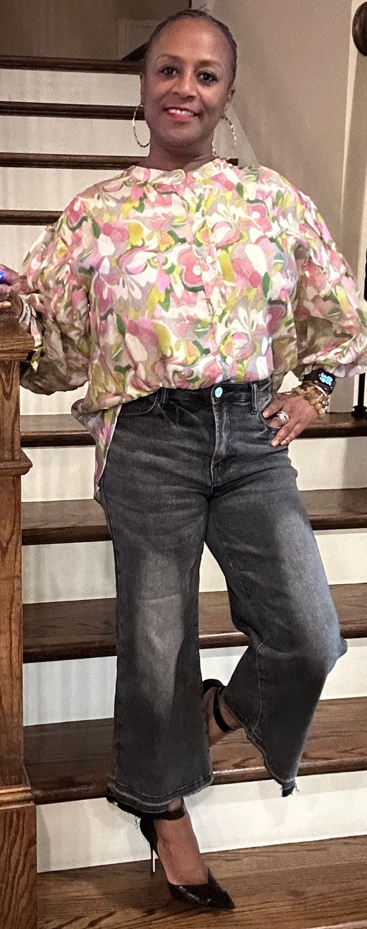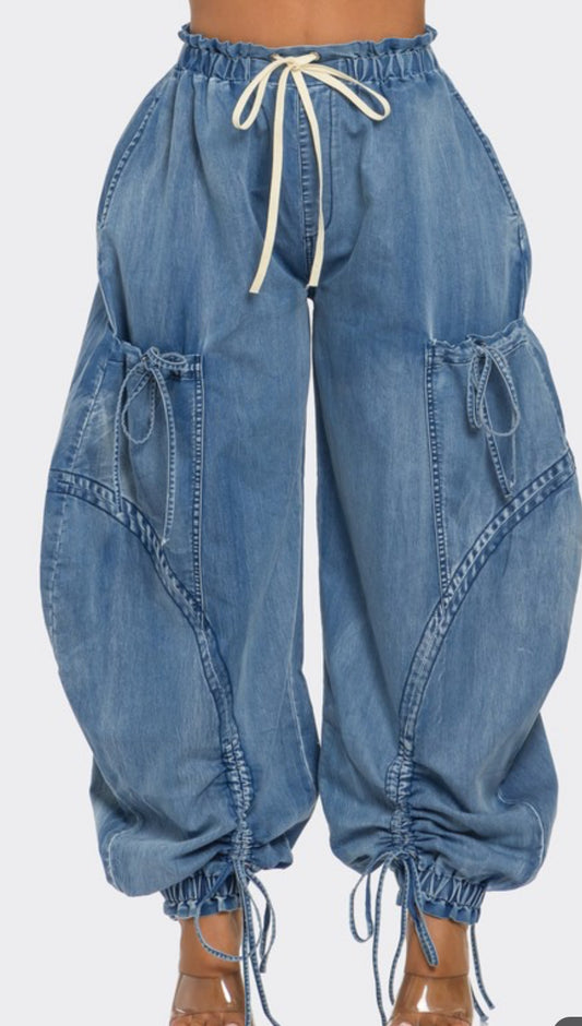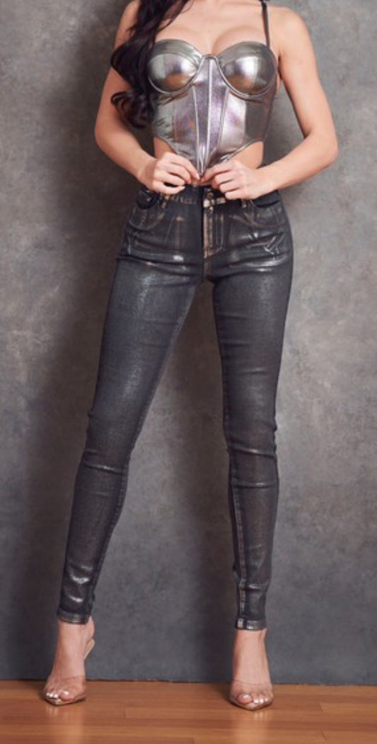 ASYMMETRICAL CRISS CROSS BUTTON JEANS