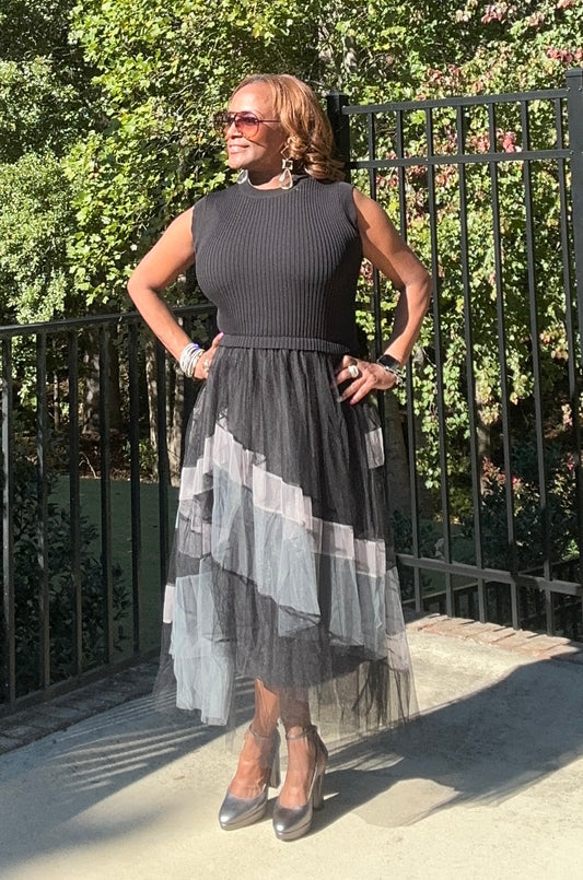 BLACK A-LINE SLEEVELESS TULLE DRESS