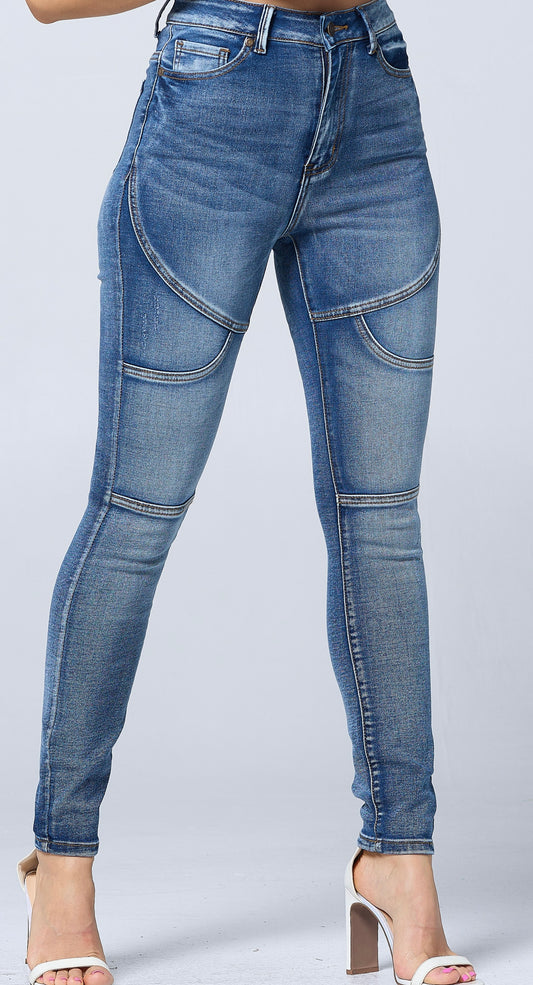 ASYMMETRICAL CRISS CROSS BUTTON JEANS