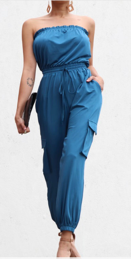 STRAPLESS TAPERED LEG JUMPSUIT