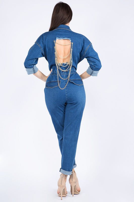 OFF THE CHAIN DENIM JUMPSUIT